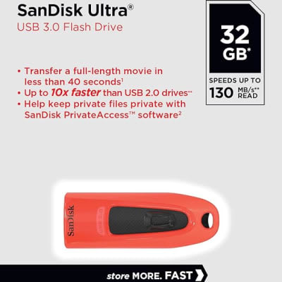 SanDisk Ultra USB 3.0 FLASH DRIVE 32GB UP TO 130MB/s READ SPEED